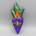Little Flaming Heart- Rose or Purple-carved wood, vintage escutcheon